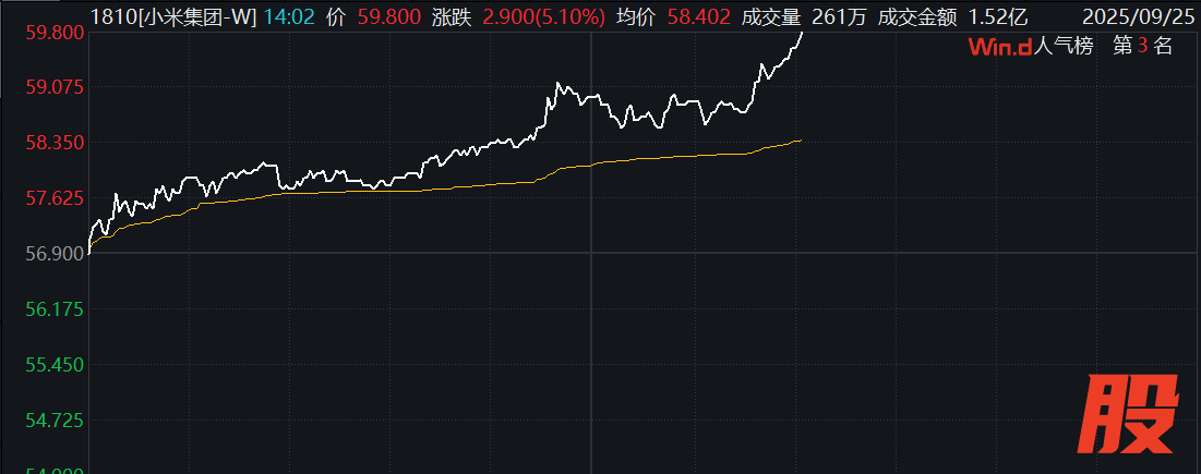 港股小米集团涨幅扩大至5%港股小米集团涨幅扩大至5%